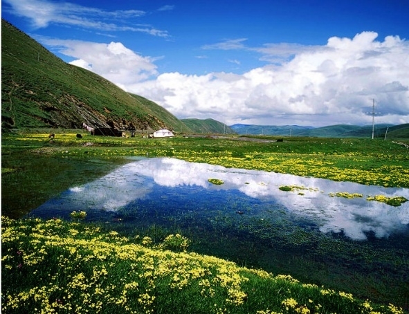 青藏高原是一個未開墾的純潔之地,它的自然、人文風貌神秘而誘人。這一片二千公頃净土,遠離工業污染,周圍是一個個巨大湖泊和由斷塊陷落而形成高原盆地,無際草原綠色風絮,孕育著茂密的原始森林和豐富的動植物。難怪青藏腹地被聯合國教育科學及文化組織登錄為世界四大零污染的土地。